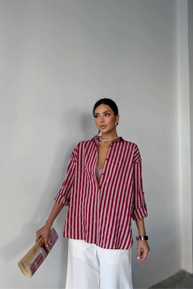 ÇİZGİLİ GÖMLEKKETEN – Bordo