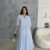 ÇİZGİLİ KETEN HAKİM YAKA DÜĞMELİ SALAŞ ELBİSE – Mavi