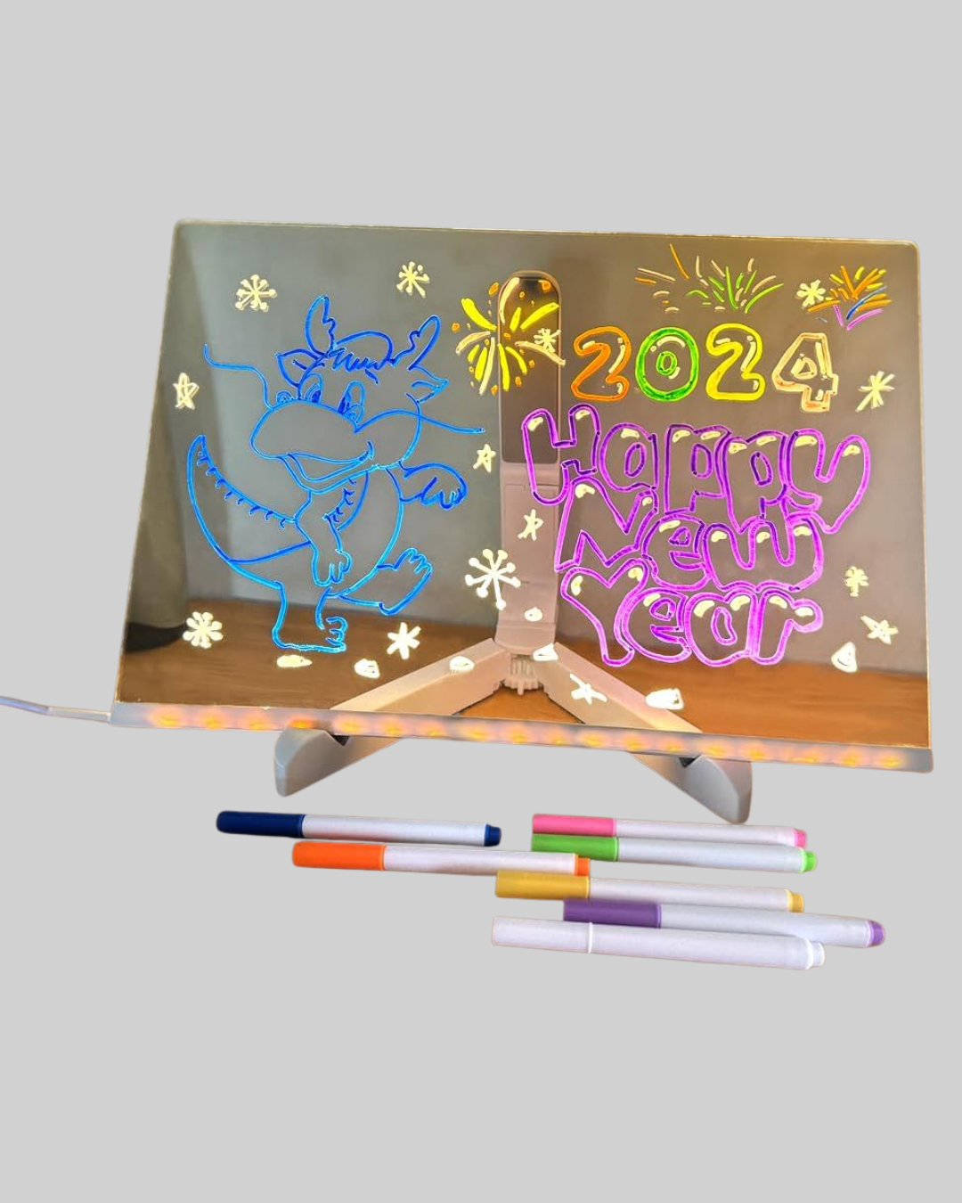 Hem eğlenceli hem de öğretici bir deneyim sunan LED ışıklı yazı tahtası, çocuklardan yetişkinlere kadar herkesin kullanımına uygundur. 7 renkli özel kalemleri sayesinde rengarenk çizimler yapabilir, notlarınızı göz alıcı bir şekilde yazabilirsiniz. Dayanıklı akrilik yüzeyi, kolay silinebilir özelliği ile defalarca kullanım imkânı tanır. USB ile çalışan bu pano, pil derdi olmadan uzun süre kullanılabilir. Masaüstü kullanımıyla çocuklar için eğlenceli bir oyun aracına dönüşürken, duvara monte edildiğinde dekoratif bir yazı panosu görevi görür. Öğrenciler, öğretmenler ve ofis çalışanları için günlük planlayıcı veya hatırlatma tahtası olarak da tercih edilebilir.
