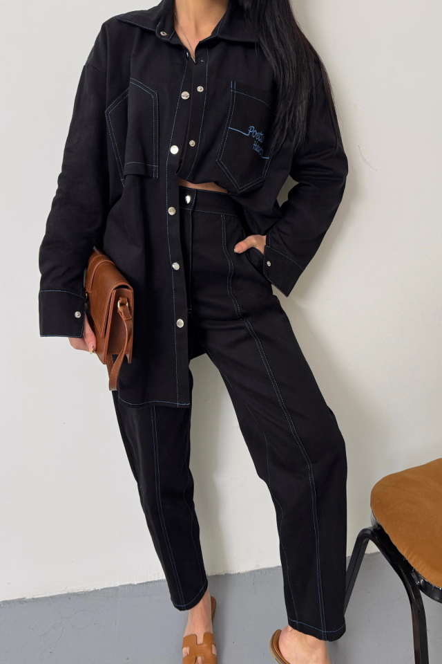 DENİM PUNTOLU GÖMLEK-PANTOLON TAKIM – Mavi