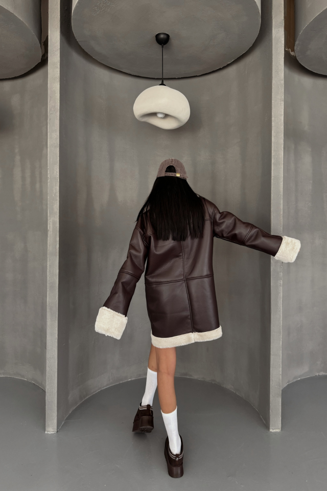 DERİ MONT KOL VE YAKA PELUŞ KAPAKSIZ CEP DETAYLI – Kahverengi