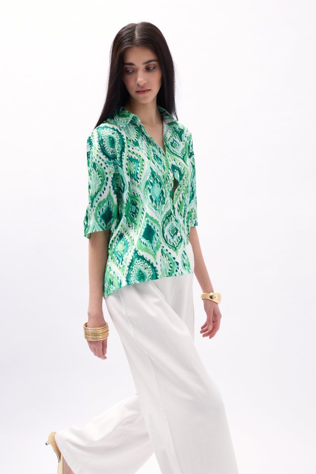 Desenli Saten Gömlek