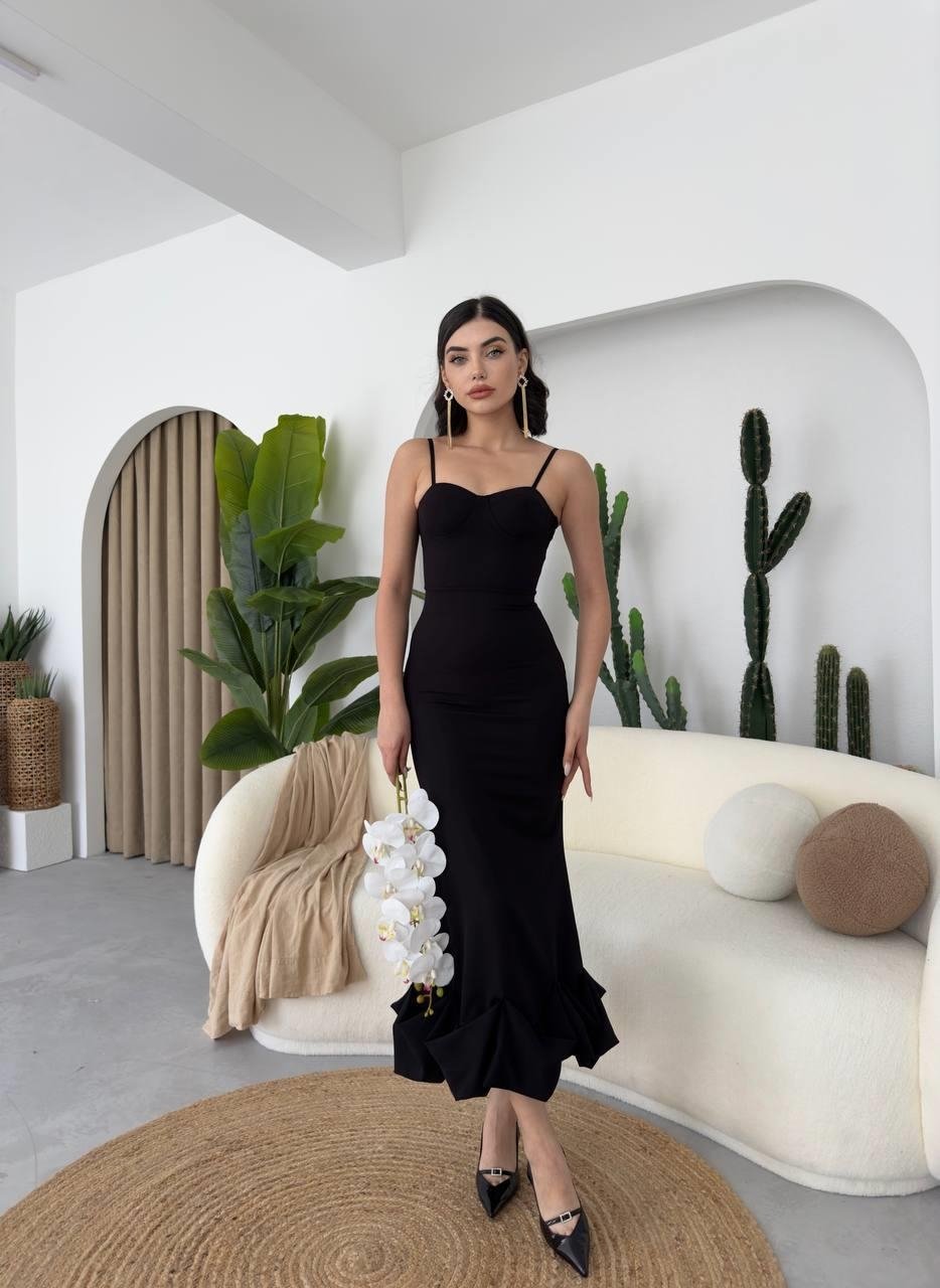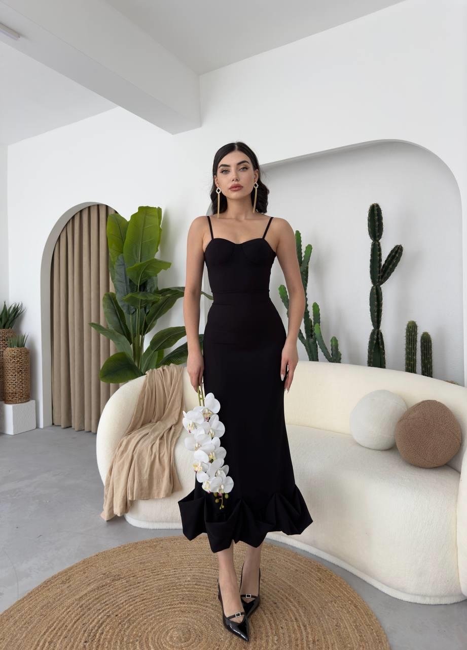 Dominic Eteği Büzgülü Midi Boy Elbise