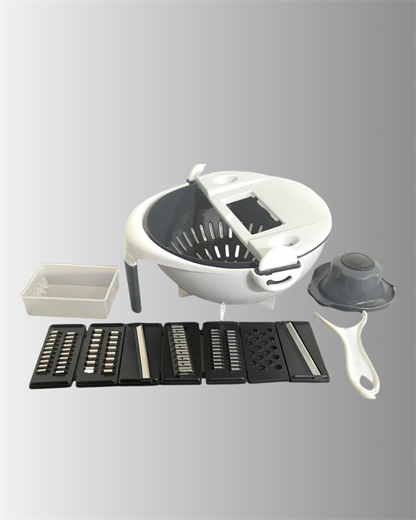 Bu pratik mutfak aparatı, yalnızca sebze ve meyve değil, aynı zamanda peynir gibi diğer gıdaların da hızlı ve eşit şekilde doğranmasını sağlar. Döner mekanizma ile çalışan değiştirilebilir bıçakları, çeşitli kalınlıklarda kesim yapma imkanı verir. Hazneye entegre süzgeç bölmesi, doğradığınız ürünlerin yıkanıp süzülmesini kolaylaştırır. El koruyuculu yapısı, bıçaklarla teması en aza indirerek daha güvenli bir kullanım sunar. Gündelik yemek hazırlıklarında hız ve pratiklik sağlayan bu ürün, aynı zamanda kompakt tasarımıyla mutfağınızda yer tasarrufu da sağlar.