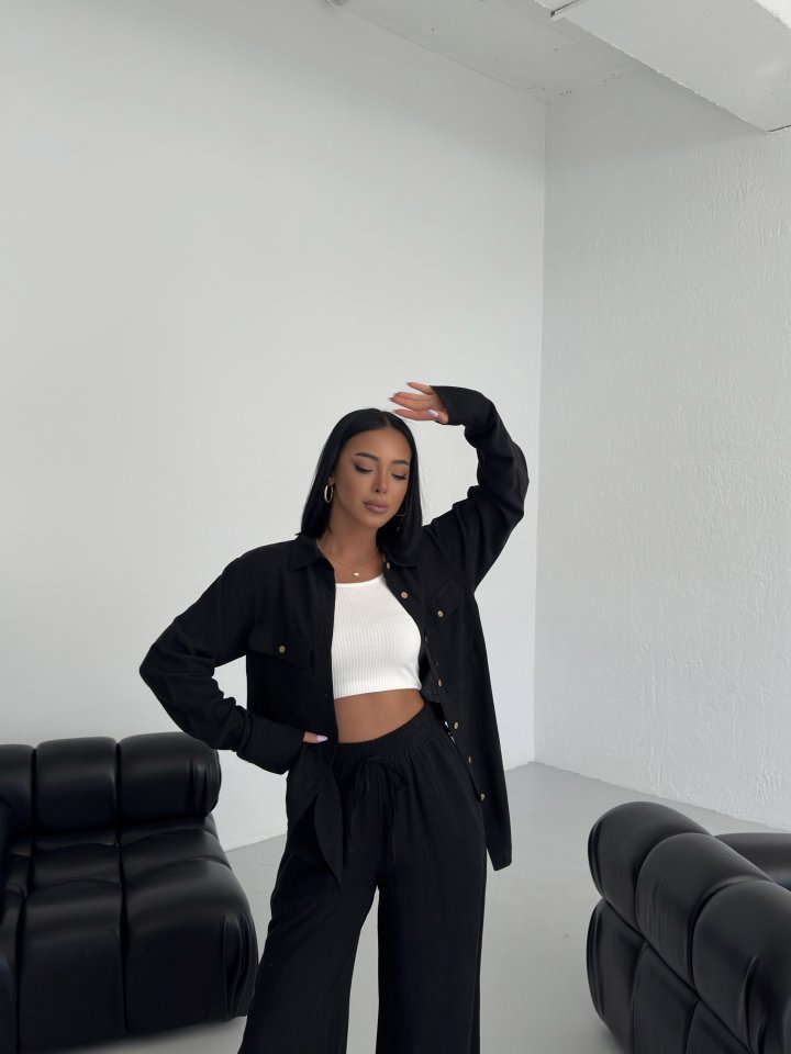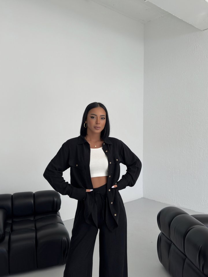 Düğmeli̇ Cepli̇ Keten İki̇li̇ Takim