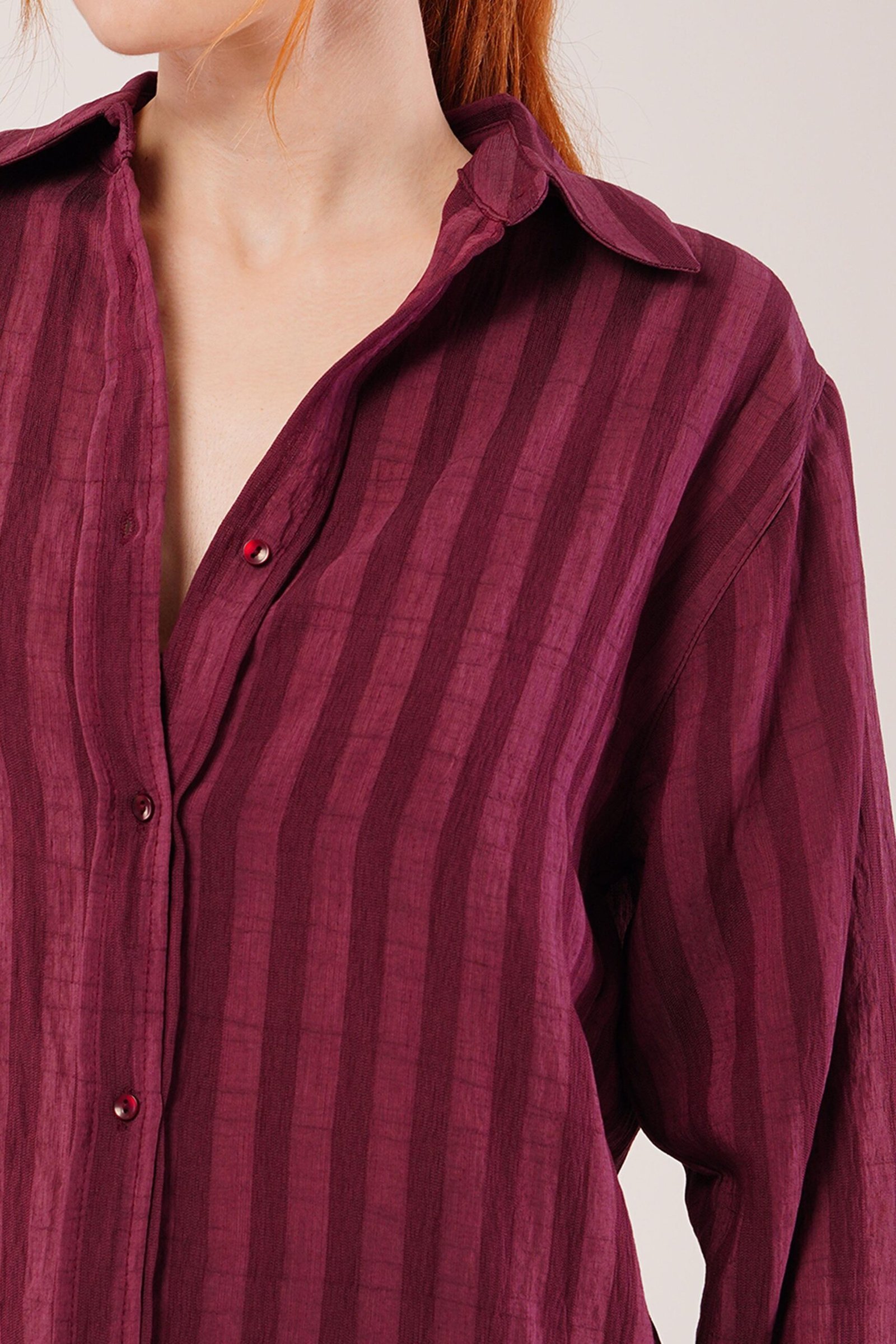 Düğmeli Ve Çizgi Detaylı Bordo Gömlek