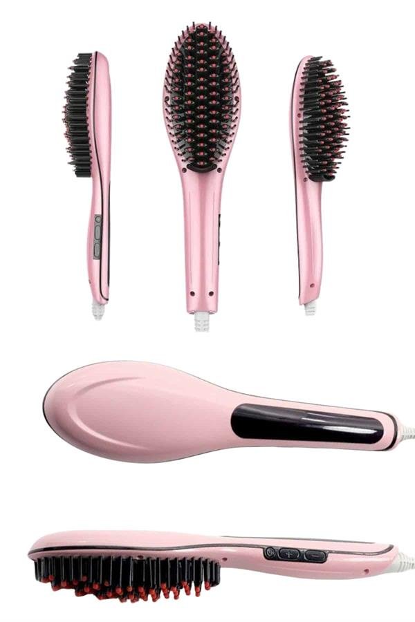 Elektrikli Saç Düzleştirici Tarak Saç Düzleştirici Fırça Sıkı Dişli Pembe