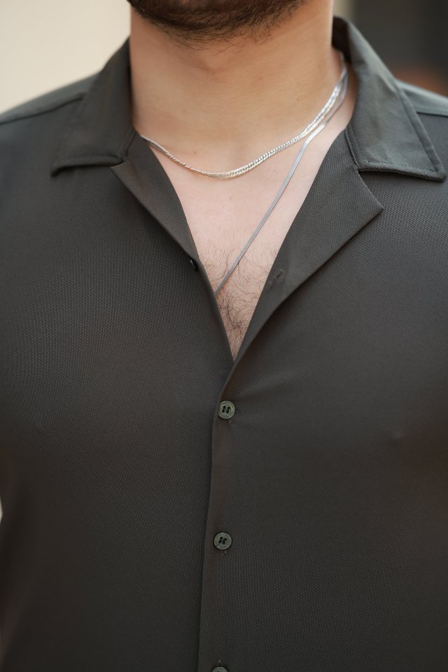 Erkek Apaj Yaka Kısa Kollu Gömlek