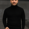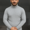 Erkek Balıkcı Yaka Bağazlı Triko Kazak Pamuklu Kalın Fitilli Dokuma, Regular Fit Uzun Kollu Kışlık Model – Mint Yeşili