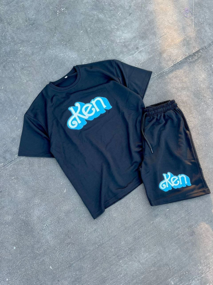 Erkek Baskılı İkili Şort Takım – Siyah
