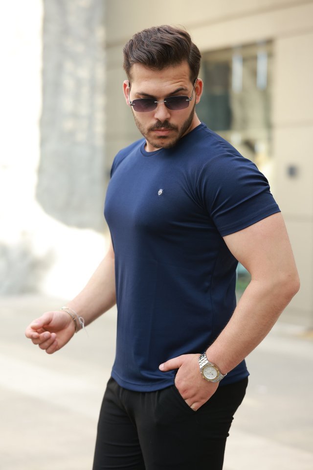 Erkek Bisiklet Yaka Arma Detaylı Basic Kısa Kollu Tişört