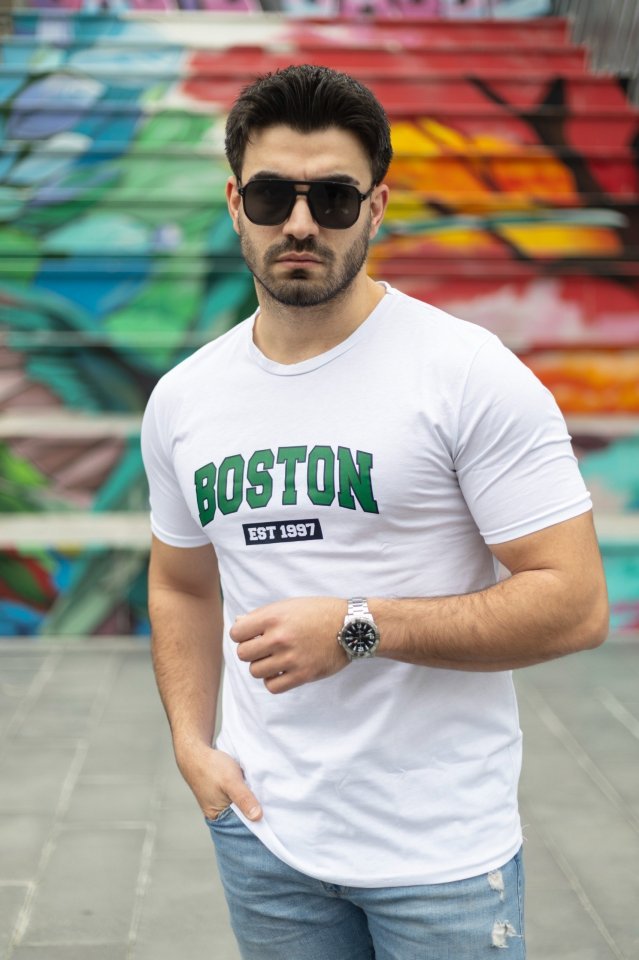 Erkek Boston Baskılı Süprem T-shirt