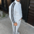 Erkek Çift Şeritli Eşofman Takım Dik Yaka Fermuarlı Sweatshirt Boru Paça Alt, Oversize 3 Iplik Pamuklu – Beyaz