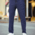 Erkek Cizgili Dokuma Krep Jogger Buggy Pantalon Rahat Kalıp – Lacivert