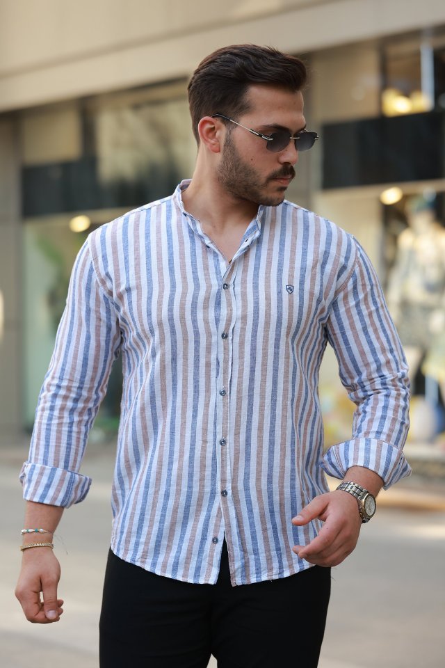 Erkek Hakim Yaka çok Renkli Gömlek
