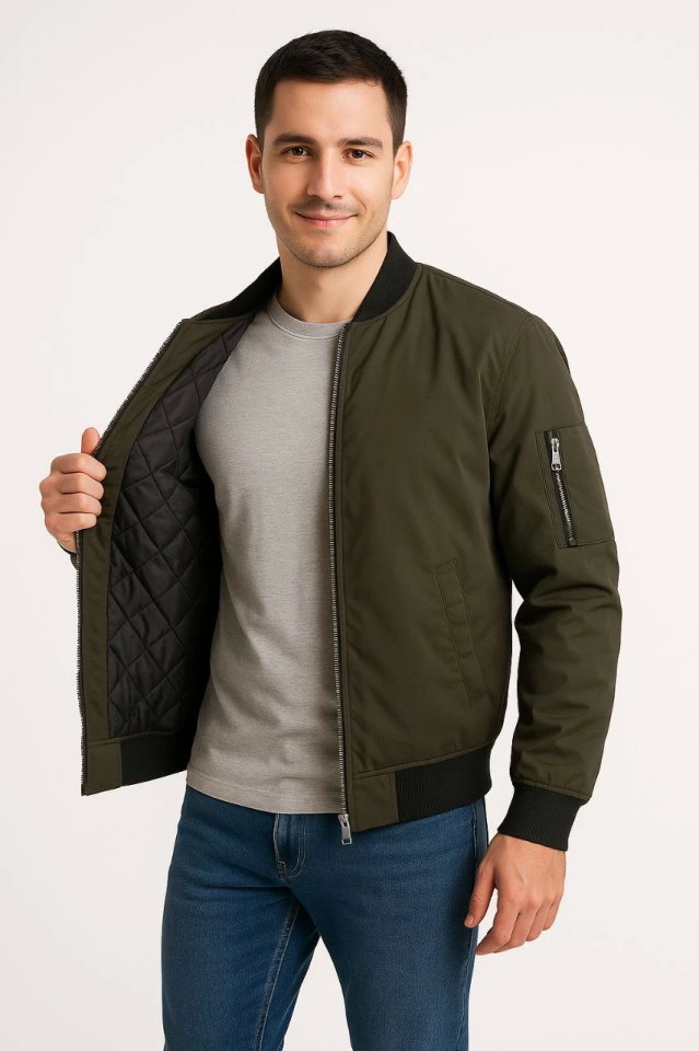 Erkek Içi Astarlı Fermuarlı Bomber Mont Ceket – Haki
