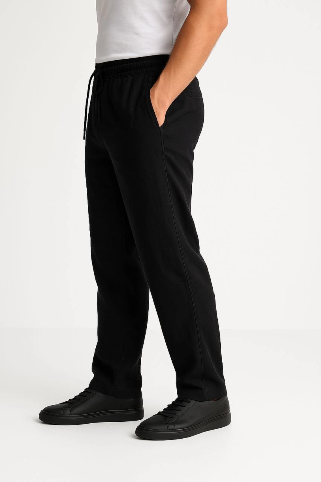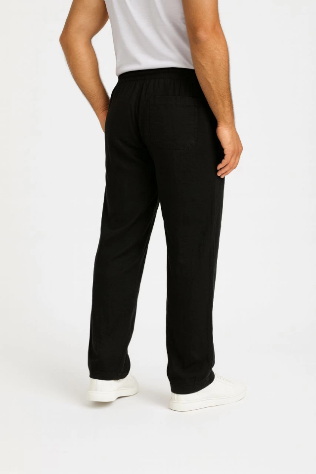 Erkek Keten Pantolon – Cepli, Beli Lastikli Ve Bağcıklı, Nefes Alan Rahat Kalıp, Yazlık Ve Baharlık Günlük Giyim, Şık – Konforlu Boru Paça Model – Siyah
