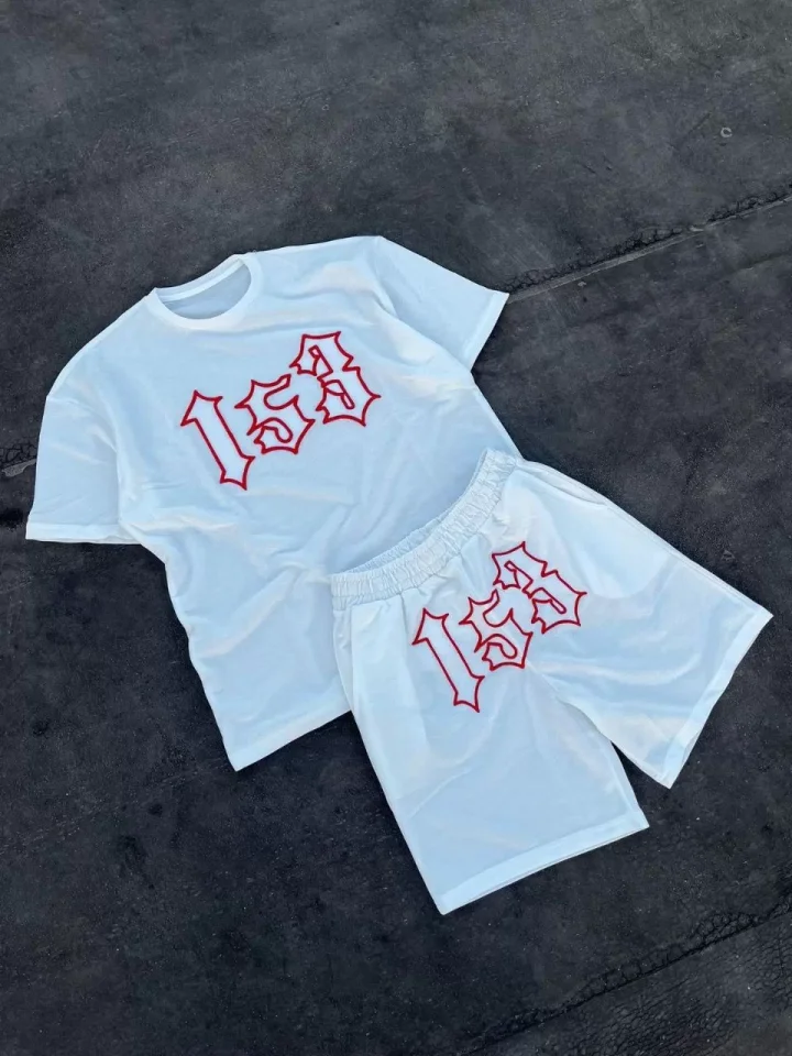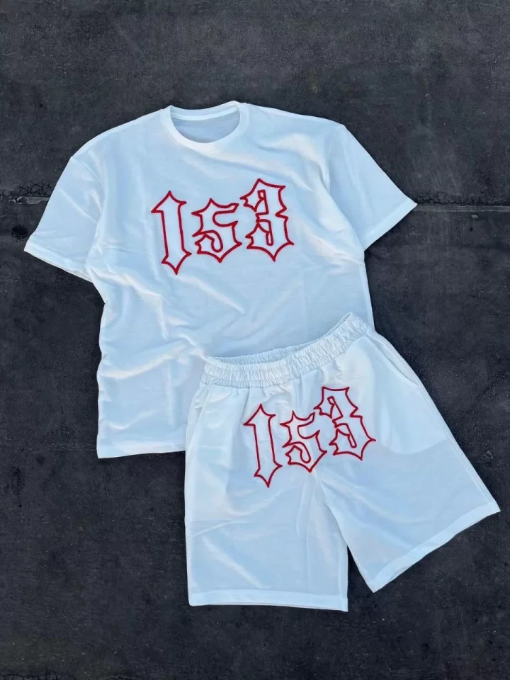 Erkek Nakış İşlemeli Şortlu Takım – Beyaz