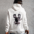 Erkek Oversize Üç İplik Kapüşonlu Sweat – Kol Ve Etek Ribana Detaylı, Ön Ve Sırt Baskılı, Kanguru Cepli Rahat Kalıp Model – Beyaz