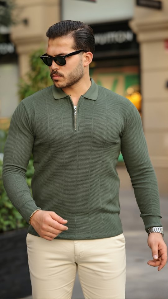 Erkek Pirinç Desenli Uzun Kollu Yakalı Triko