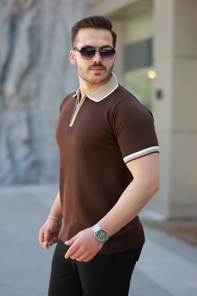 Erkek Renkli Yaka Kısa Kollu Tişört