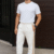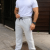 Erkek Üç İplik Kışlık Pamuklu Yandan Garneli Kalın Bej Şeritli Cepli Eşofman Altı – Beyaz