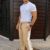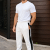 Erkek Üç İplik Kışlık Pamuklu Yandan Garneli Kalın Şeritli Cepli Eşofman Altı – Bej