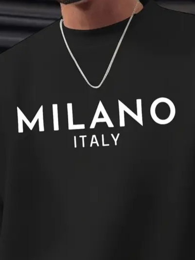 Erkek Uzun Kollu Bisiklet Yaka Milano Yazılı Iki Iplik Bluz