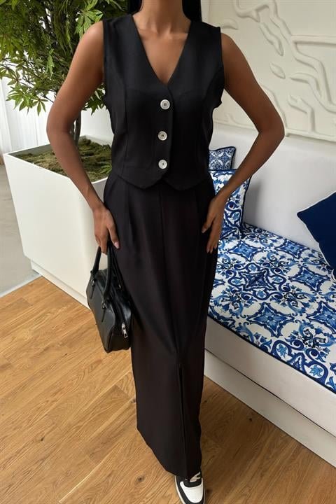 Etek Yırtmaçlı Yelekli Keten Takım 10131