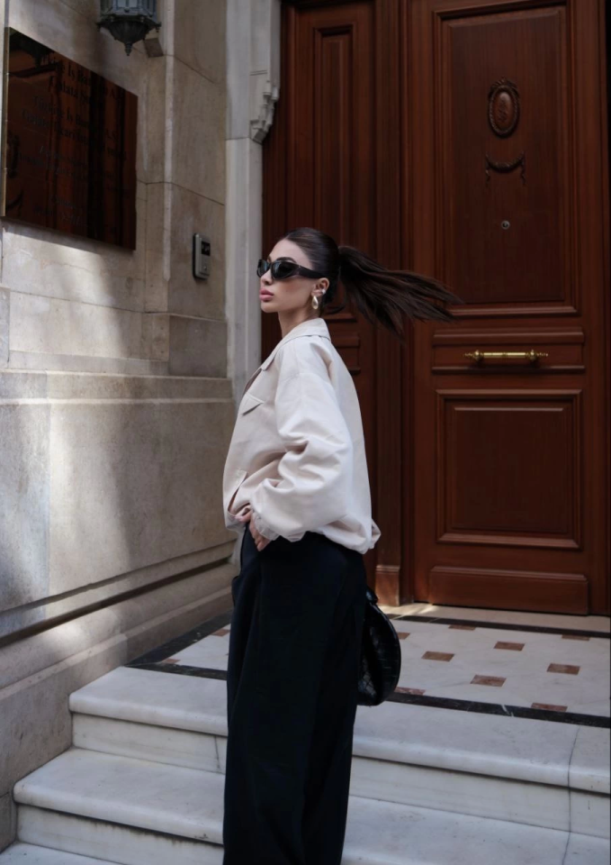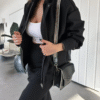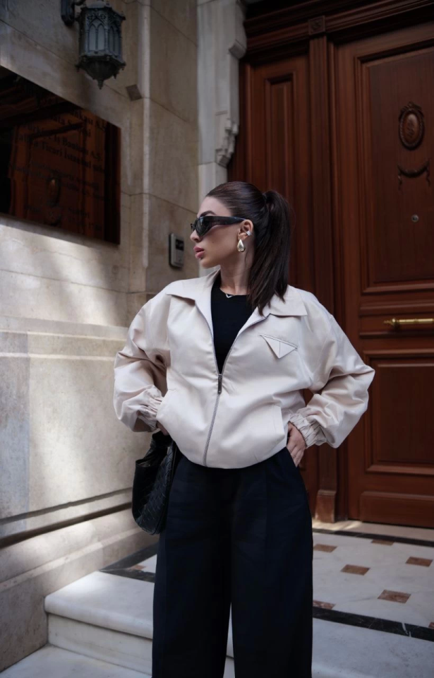 Fermuarlı Gömlek Yaka Bomber Ceket – Beyaz