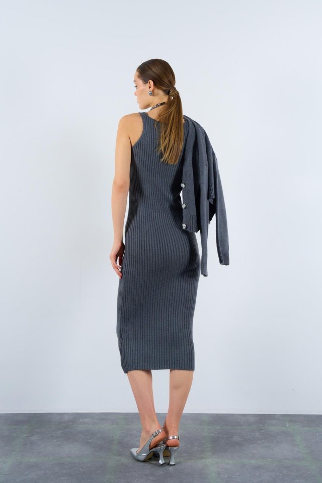Fitilli Elbise Hırkalı Takım – Füme