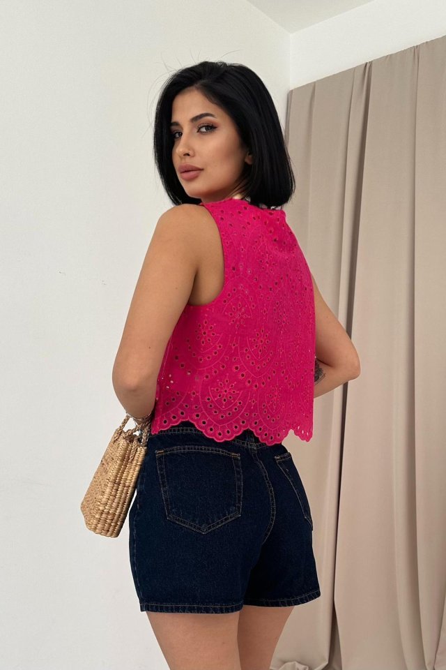 Fuşya Sıfır Kol Brode Bluz