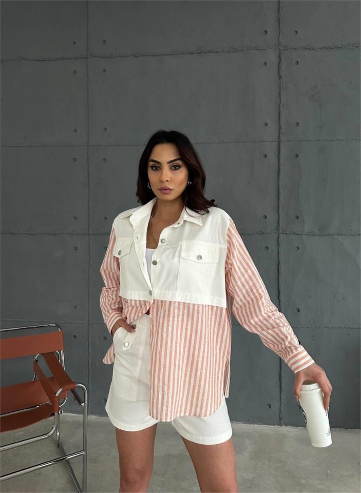 GABARDİN ŞORT – GABARDİN – ÇİZGİLİ KETEN GARNİLİ CEKET TAKIM – Orange