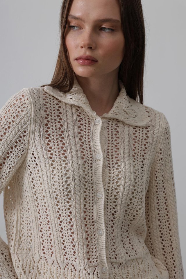 Gömlek Yaka Uzun Kol Triko – Ekru