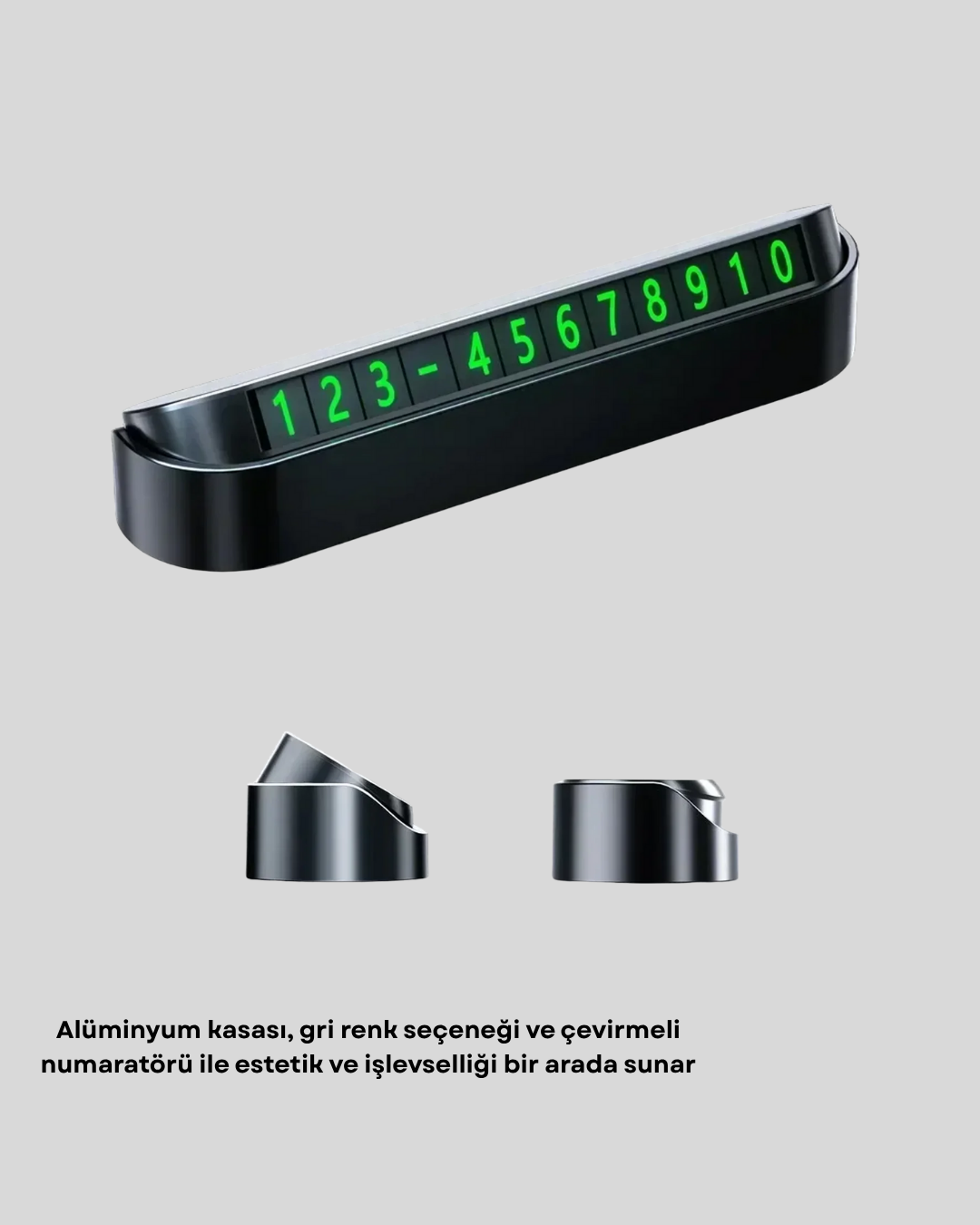 Alüminyum Kasa Çevirmeli Araç İçi Telefon Numaratörü, sürücüler için pratik ve güvenli bir çözüm sunar. Park halindeyken iletişim bilgilerinizin kolayca görülebilmesini sağlayarak hem güvenlik hem kolaylık sağlar.Yüksek kaliteli alüminyum gövde, dayanıklılık ve paslanmazlık garantisi sunar. Şık gri yüzeyi, aracın iç dekorasyonuna modern bir dokunuş kazandırır.Çevirmeli numaratör mekanizması, numaranızı saniyeler içinde ayarlamanızı sağlar. Büyük ve net rakamlar, hem gündüz hem gece rahatça okunabilir.Montaj işlemi son derece kolaydır: kutudan çıkan çift taraflı bant ile ön cama veya torpido yüzeyine kolayca yapıştırabilirsiniz. Sağlam tutuş özelliği sayesinde hareket sırasında yerinden oynamaz.Bu ürün, sadece işlevsel değil aynı zamanda dekoratif bir araç aksesuarıdır. Minimalist tasarımı, gri metal dokusu ve kompakt boyutuyla her araç modeline uyum sağlar.Paslanmaya, ısıya ve çizilmeye karşı dayanıklı yapısıyla uzun yıllar kullanılabilir.Pratik, zarif ve kullanışlı — Alüminyum Gri Araç İçi Park Numaratörü, sürücülere hem estetik hem de fonksiyonel bir deneyim sunar.