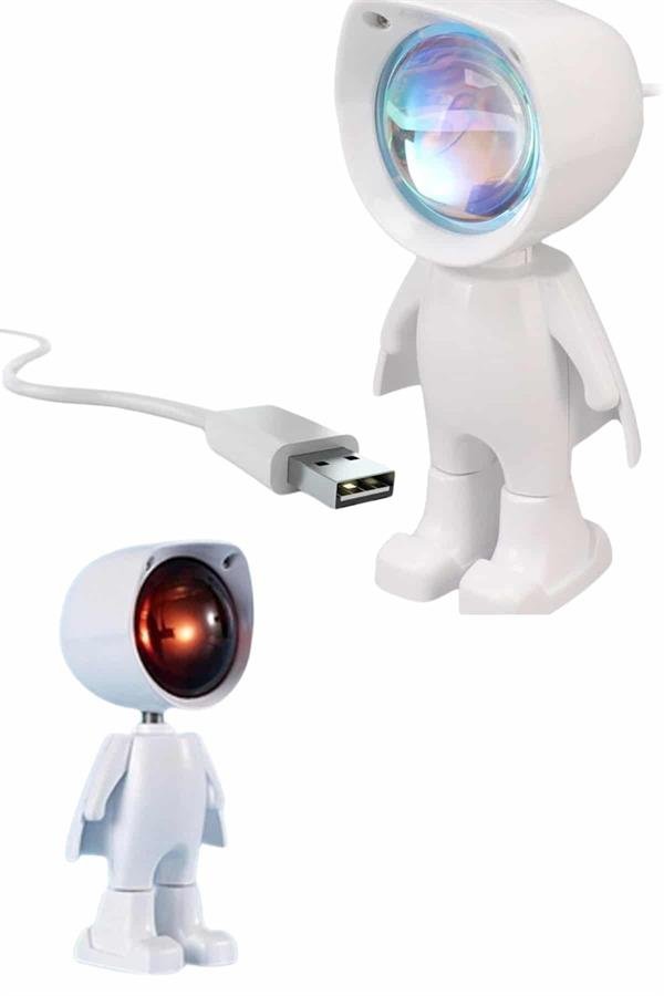 Gün Batımı Lambası Işık Arka Plan Projektör Sevimli Astronot Enerji Tasarruflu
