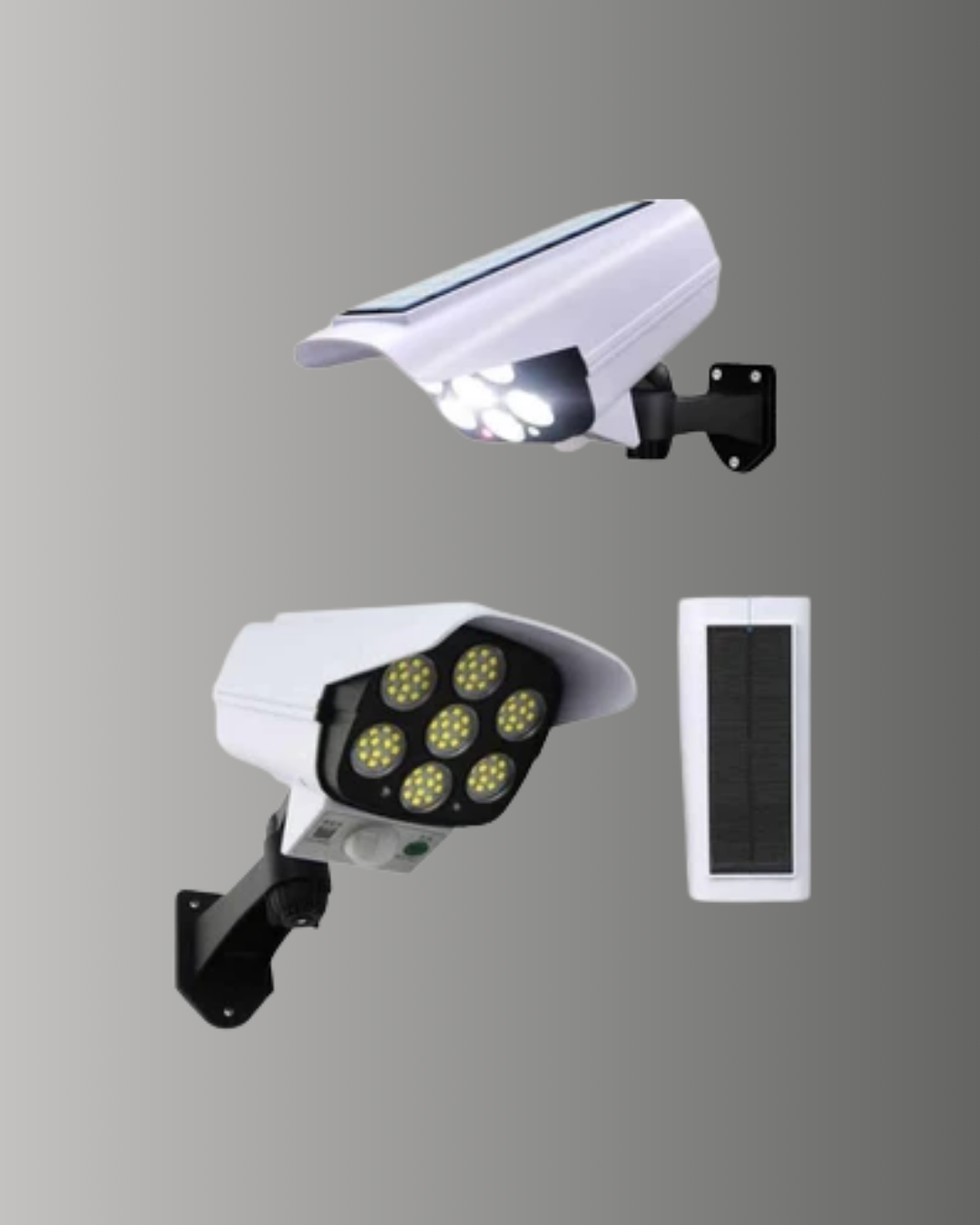 Güneş Enerjili LED Lamba + Güvenlik Kamerası Görünümlü– 5-8 m Hareket Algılamalı Beyaz Işık