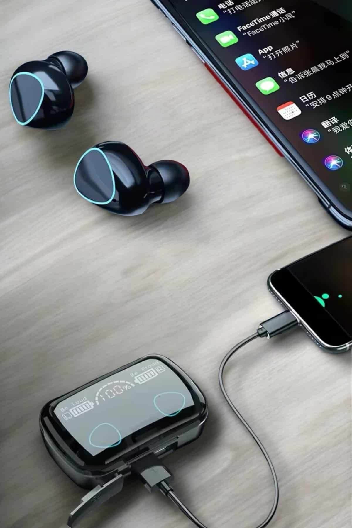 Kristal Netlikte Ses Kalitesi: HD ses desteği ile telefon görüşmelerinde ve müzik dinlerken her detayı en ince ayrıntısına kadar duyabilirsiniz. Extra Bass ile Üstün Performans: 3D ses kalitesi, derin bass efektiyle müzik keyfinizi zirveye taşır. Uzun Süreli Kullanım: Güçlü bataryası sayesinde 16 saat kesintisiz müzik keyfi sunar. Şarj kutusuyla bu süre 40 saate kadar uzar. Ergonomik ve Hafif Tasarım: Sadece 4 gram ağırlığında olan bu kulaklıklar, kulakta yokmuş hissi yaratır ve uzun süreli kullanımda rahatsızlık vermez. Gelişmiş Bluetooth 5.3 Teknolojisi: Kararlı bağlantı ve düşük gecikme süresi ile kesintisiz bir deneyim yaşarsınız. Suya ve Tere Dayanıklı: IPX-4 koruma seviyesi sayesinde spor sırasında ve hafif yağışlı havalarda endişe etmeden kullanılabilir. Manuel Kontrol Tuşları: Çağrıları cevaplamak, sonlandırmak, müzikleri yönetmek ve sesi ayarlamak artık çok kolay! Tüm Cihazlarla Uyumluluk: Android ve iOS cihazlarla sorunsuz bağlantı kurar, evrensel uyum sunar.Kullanım Rehberi: Bluetooth özelliğini etkinleştirerek kulaklıklarınızı cihazınıza bağlayın. Otomatik eşleşme özelliği ile her kullanımda hızlı bağlantı sağlayın.Teknik Özellikler: Malzeme: Kauçuk-ABS Bluetooth Versiyonu: 5.3 Çalışma Mesafesi: 10 metre Kullanım Süresi: 6-8 saat (Kutu ile toplam +40 saat) Su Geçirmezlik: IPX-4Paket İçeriği: 2 Adet Kablosuz Kulaklık 1 Adet Powerbank Şarj Kutusu 1 Adet USB Şarj Kablosu
