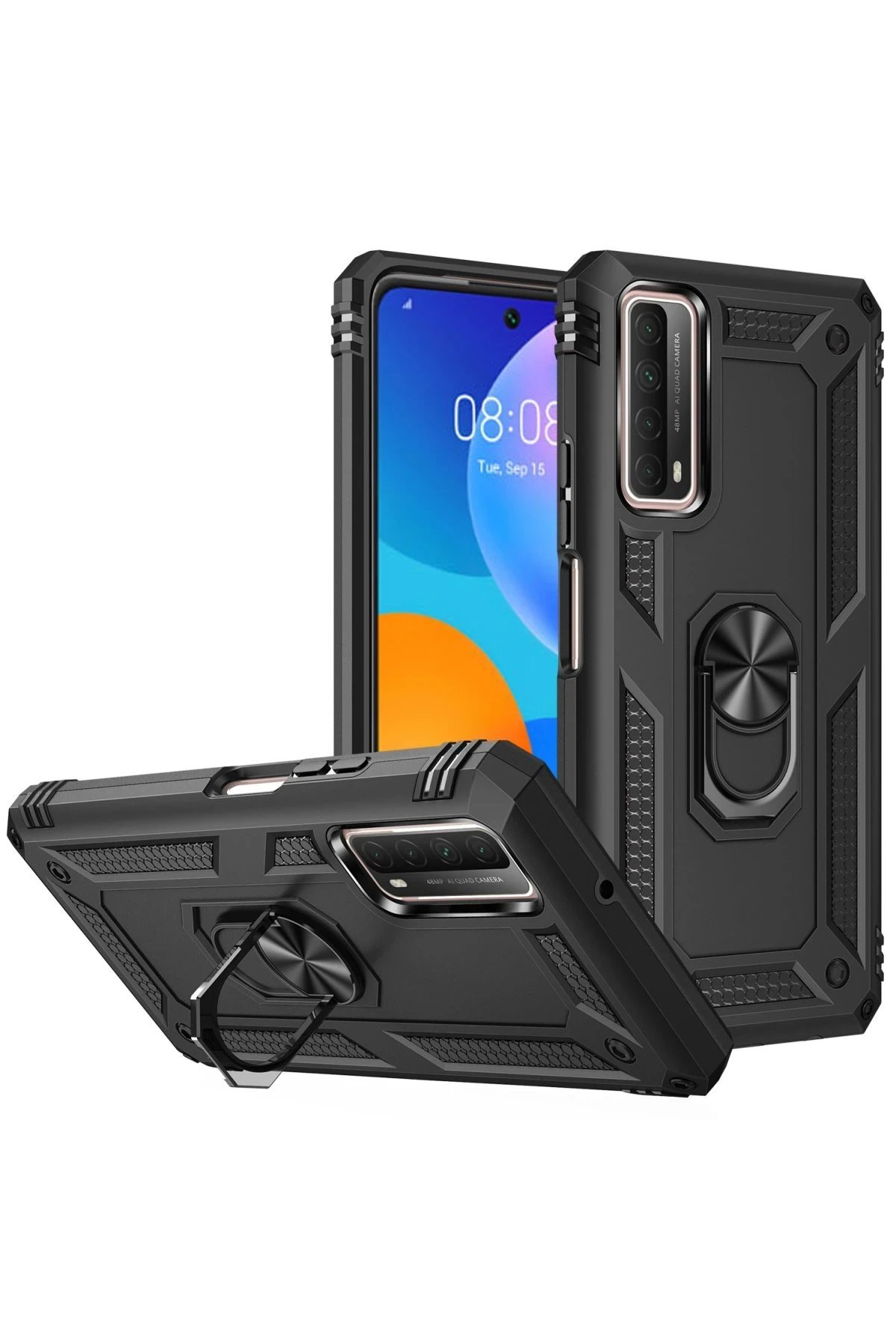 Huawei P Smart 2021 Kılıf Sofya Yüzüklü Silikon Kapak – Siyah-(5796)