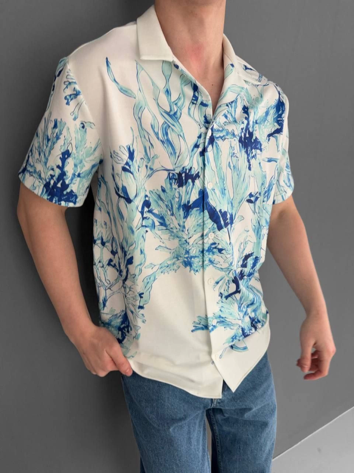 İki İplik Kumaş Baskılı Gömlek – Beyaz