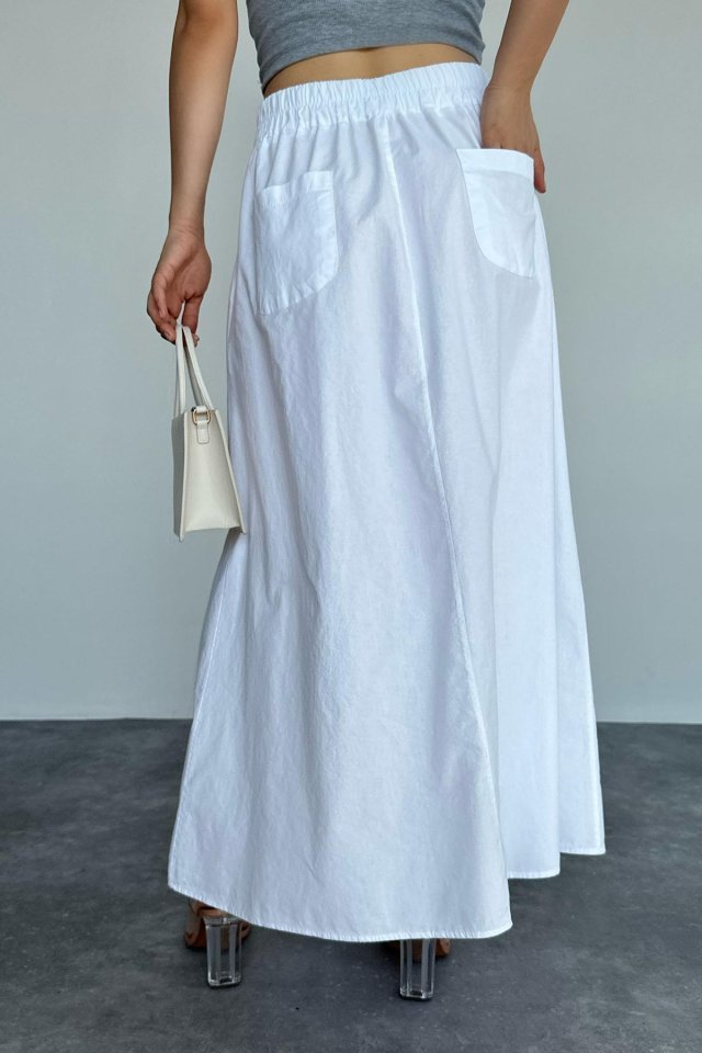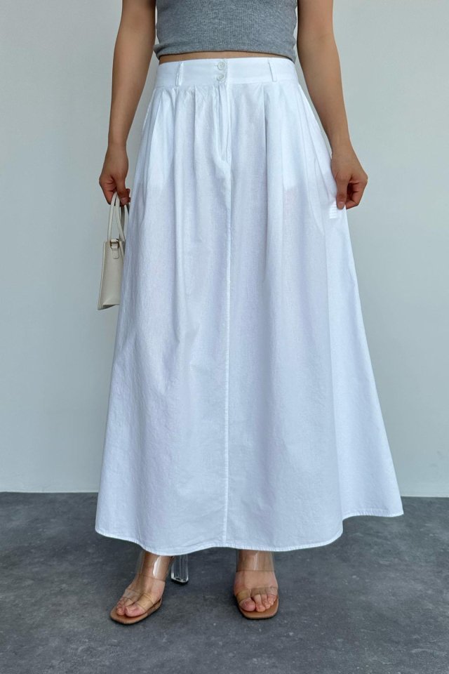 İnce Pileli Düz Etek – Beyaz