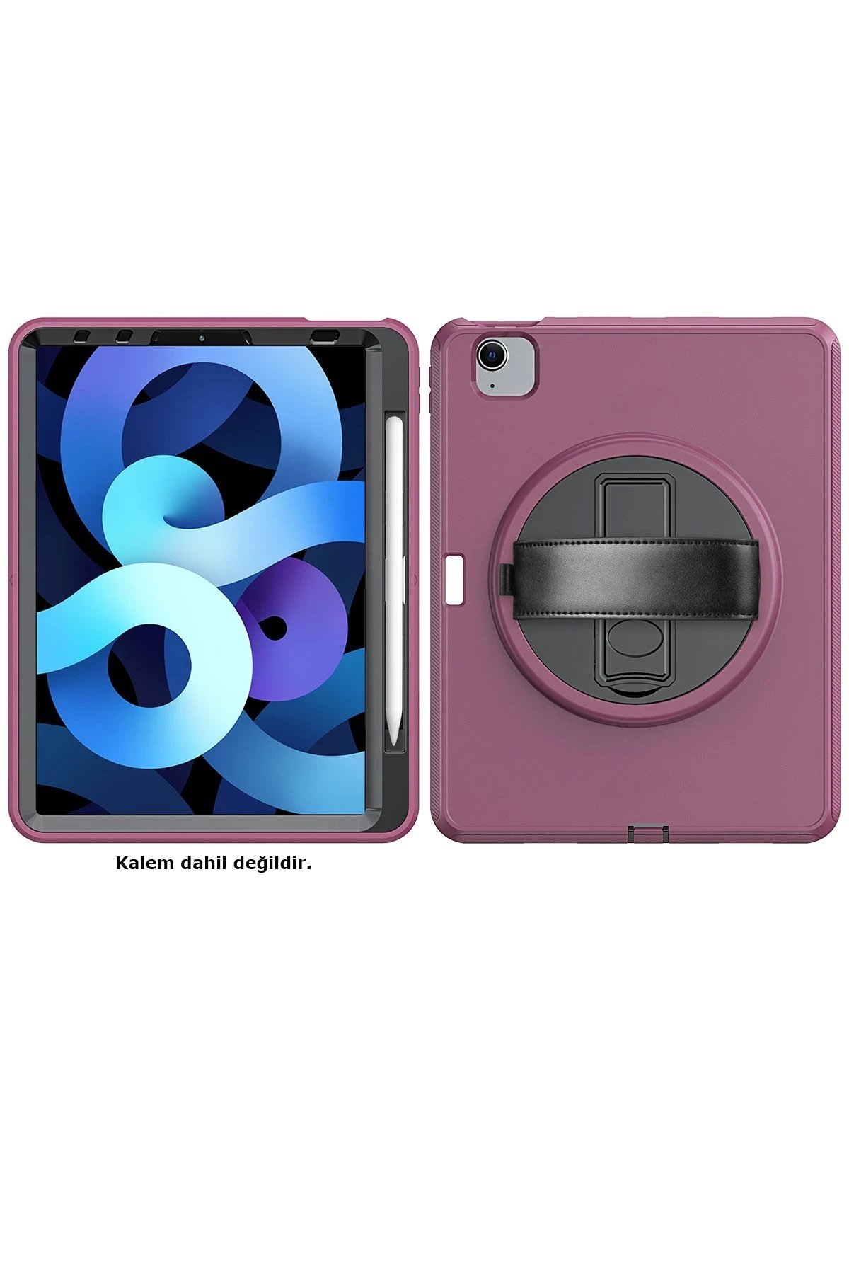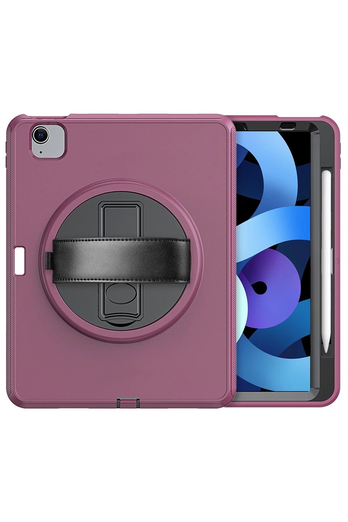 iPad 2022 10.9 (10.nesil) Kılıf Hand Strap Tablet Kılıfı – Mürdüm-(5796)