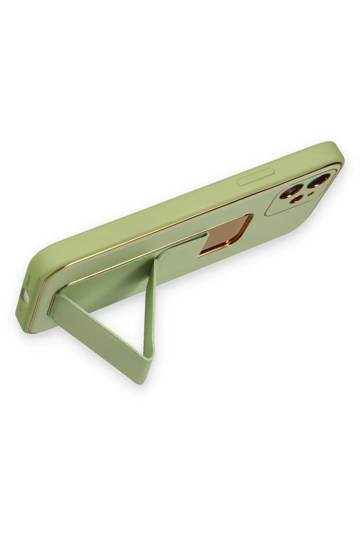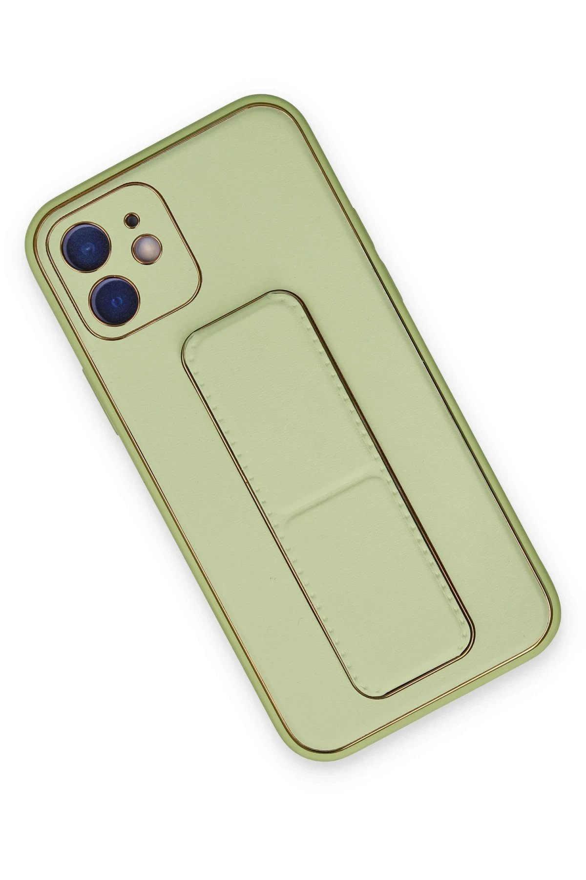 iPhone 12 Kılıf Coco Deri Standlı Kapak – Su Yeşili-(5796)