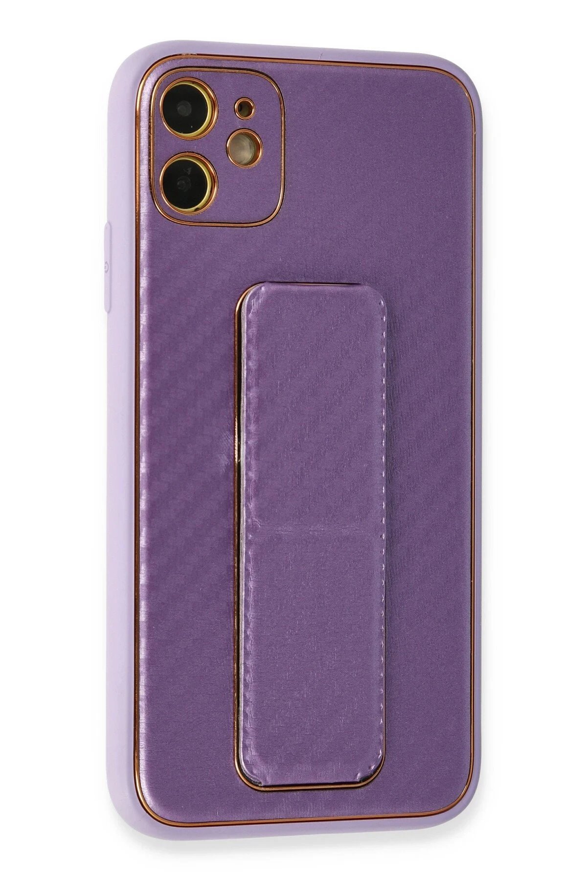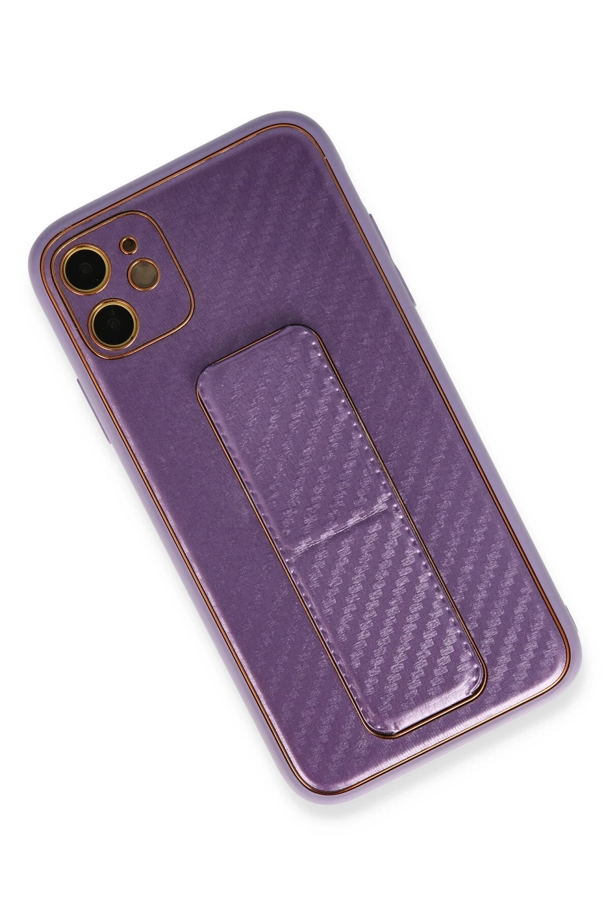 iPhone 12 Kılıf Coco Karbon Standlı Kapak – Mor-(5796)
