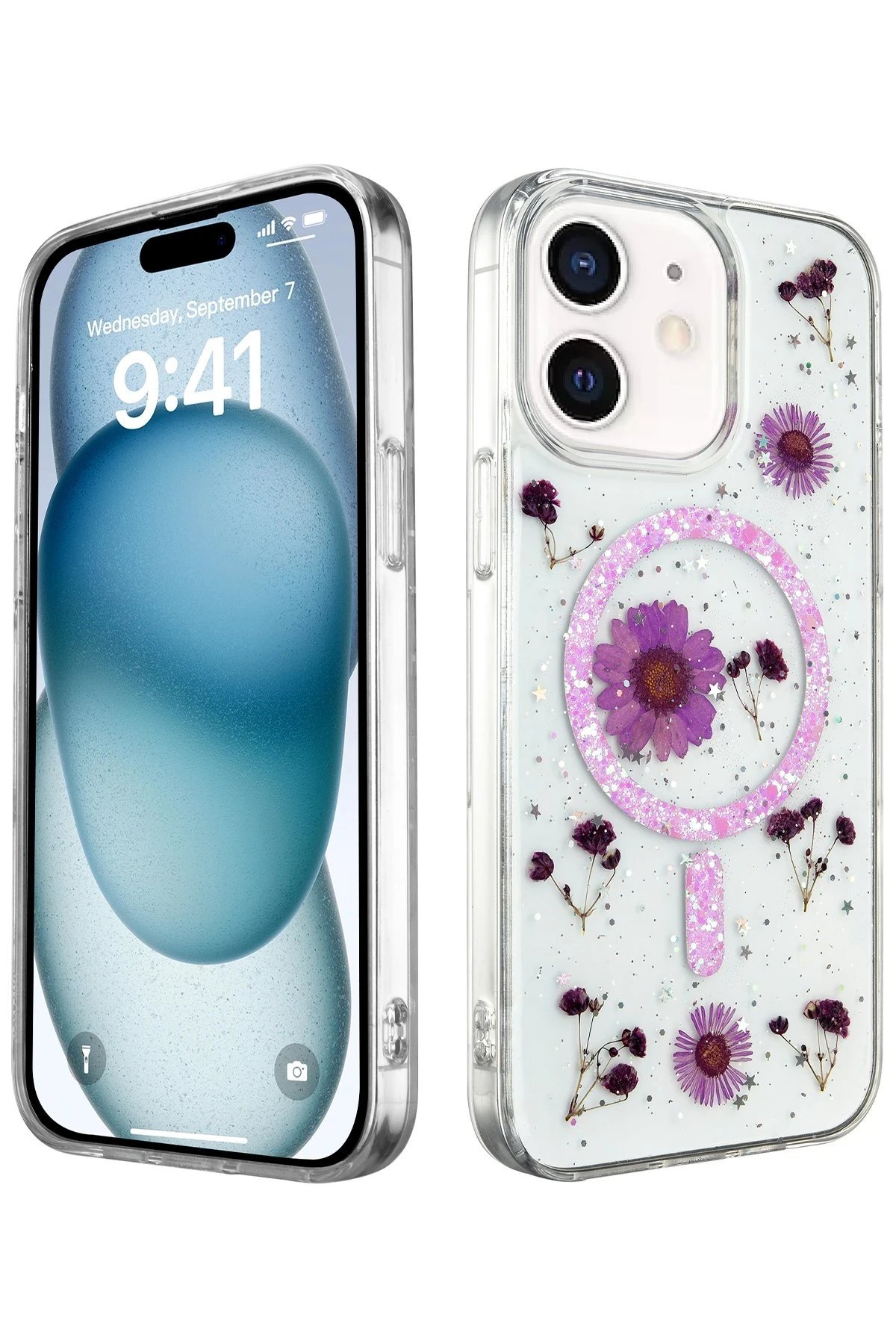 Daisy Simli MagSafe Kapak, doğanın zarafetini ve sadeliğini yansıtan, içinde gerçek çiçeklerin bulunduğu eşsiz bir tasarıma sahiptir. Kapak, içindeki gerçek papatya çiçekleri ve simli arka planı ile cihazınıza doğal bir güzellik katarken, her kapak kendi içinde benzersizdir. Bu, telefonunuzu hem korurken hem de ona kişisel bir dokunuş ekler.