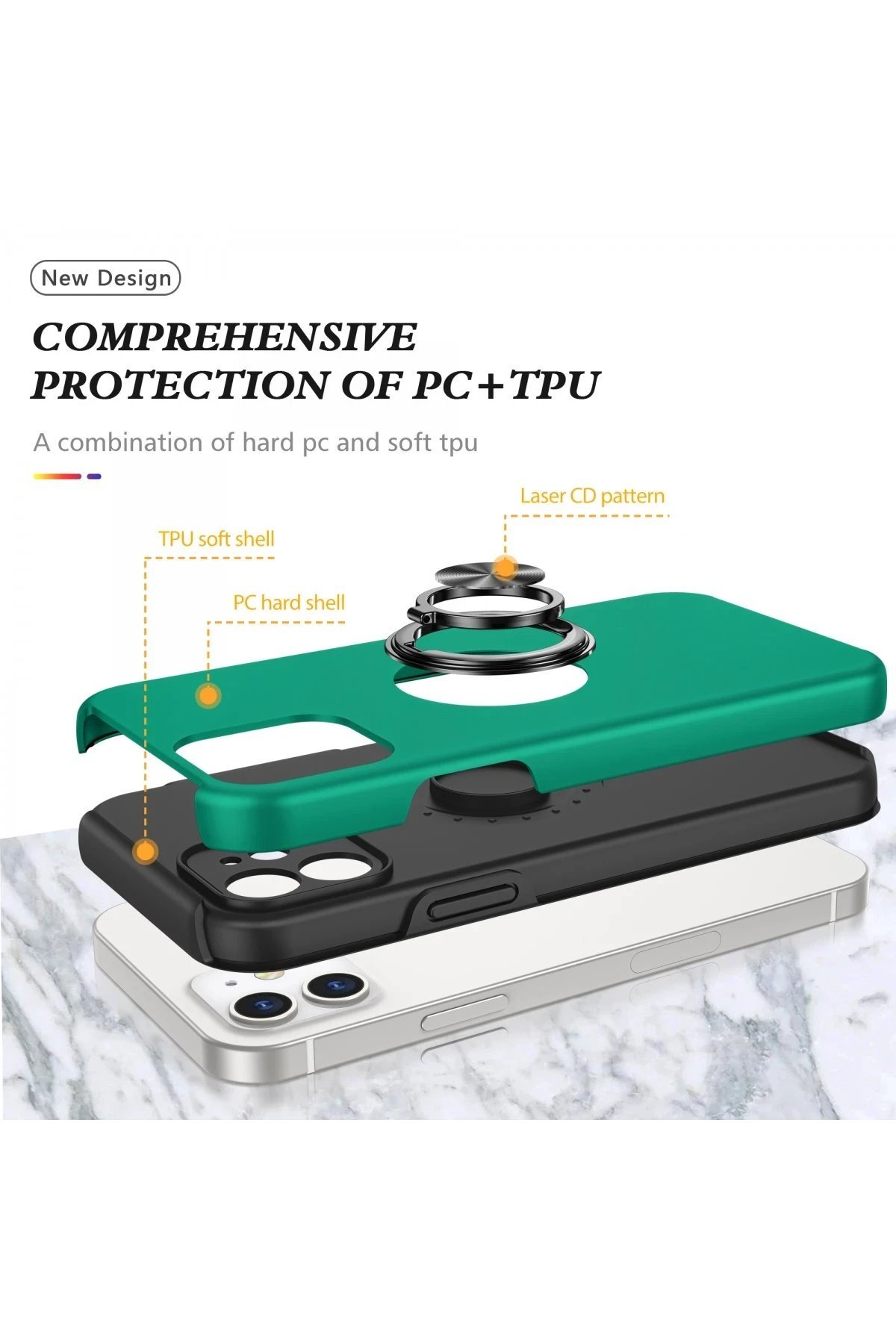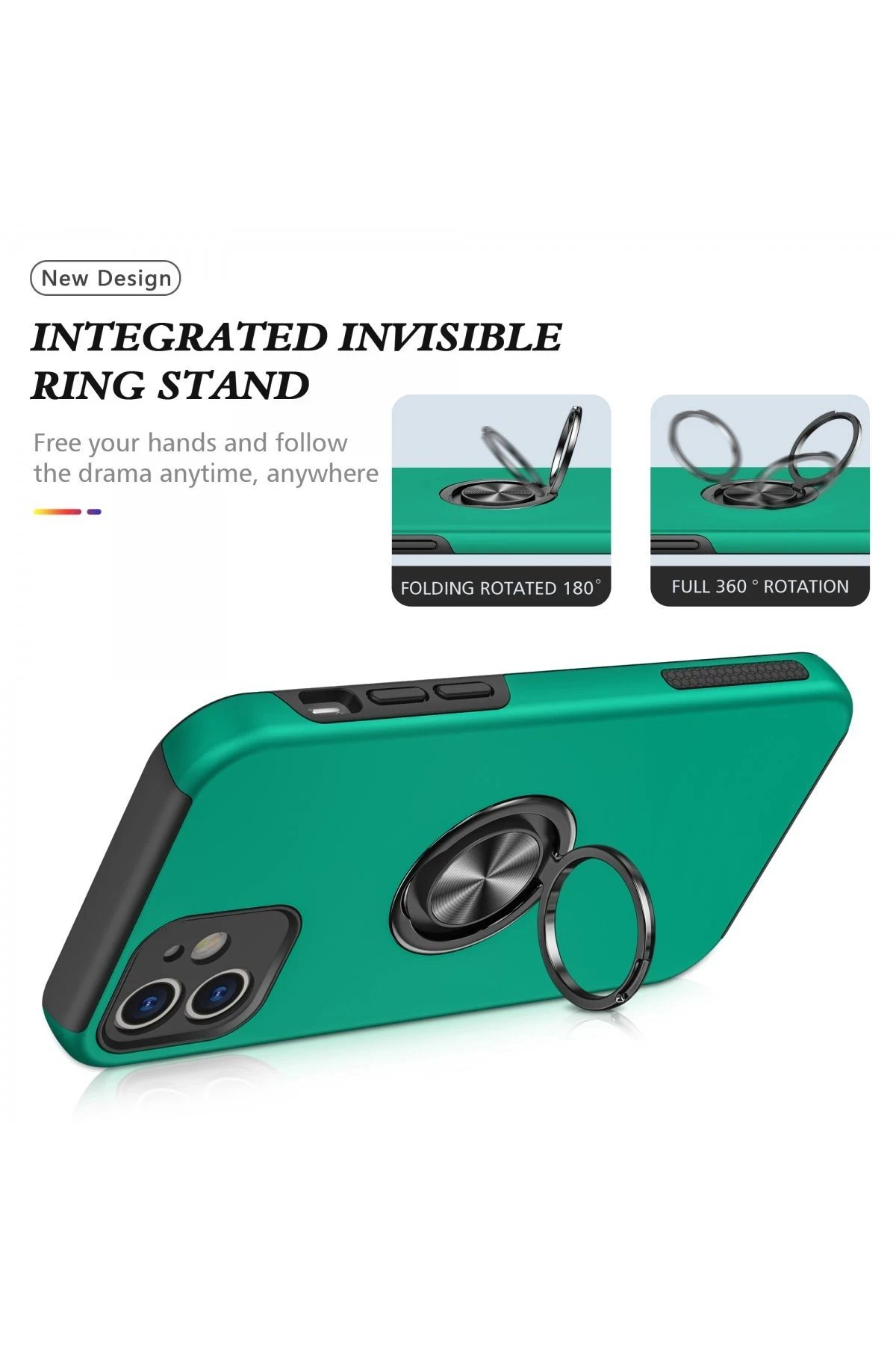 iPhone 12 Kılıf Elit Yüzüklü Kapak – Yeşil-(5796)