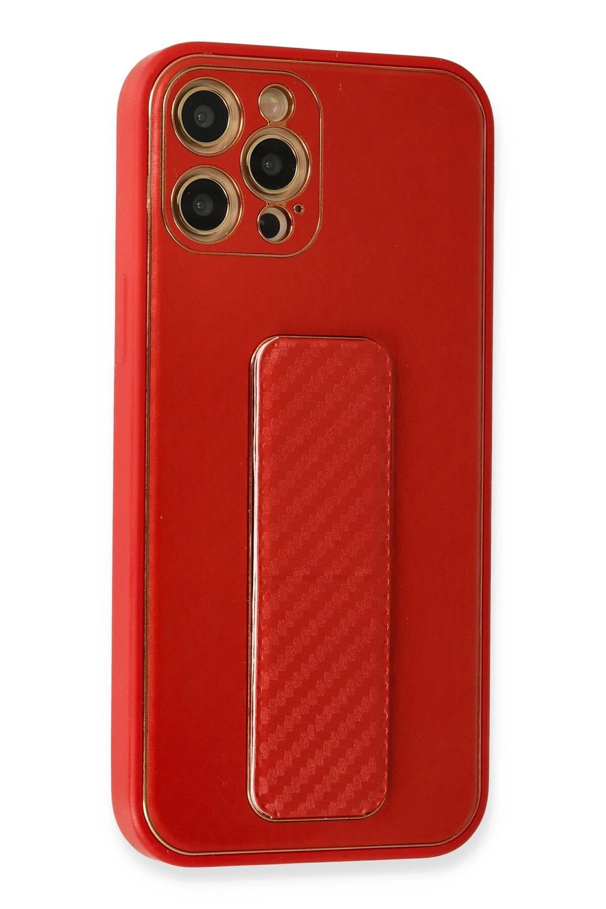 iPhone 12 Pro Kılıf Coco Karbon Standlı Kapak – Kırmızı-(5796)