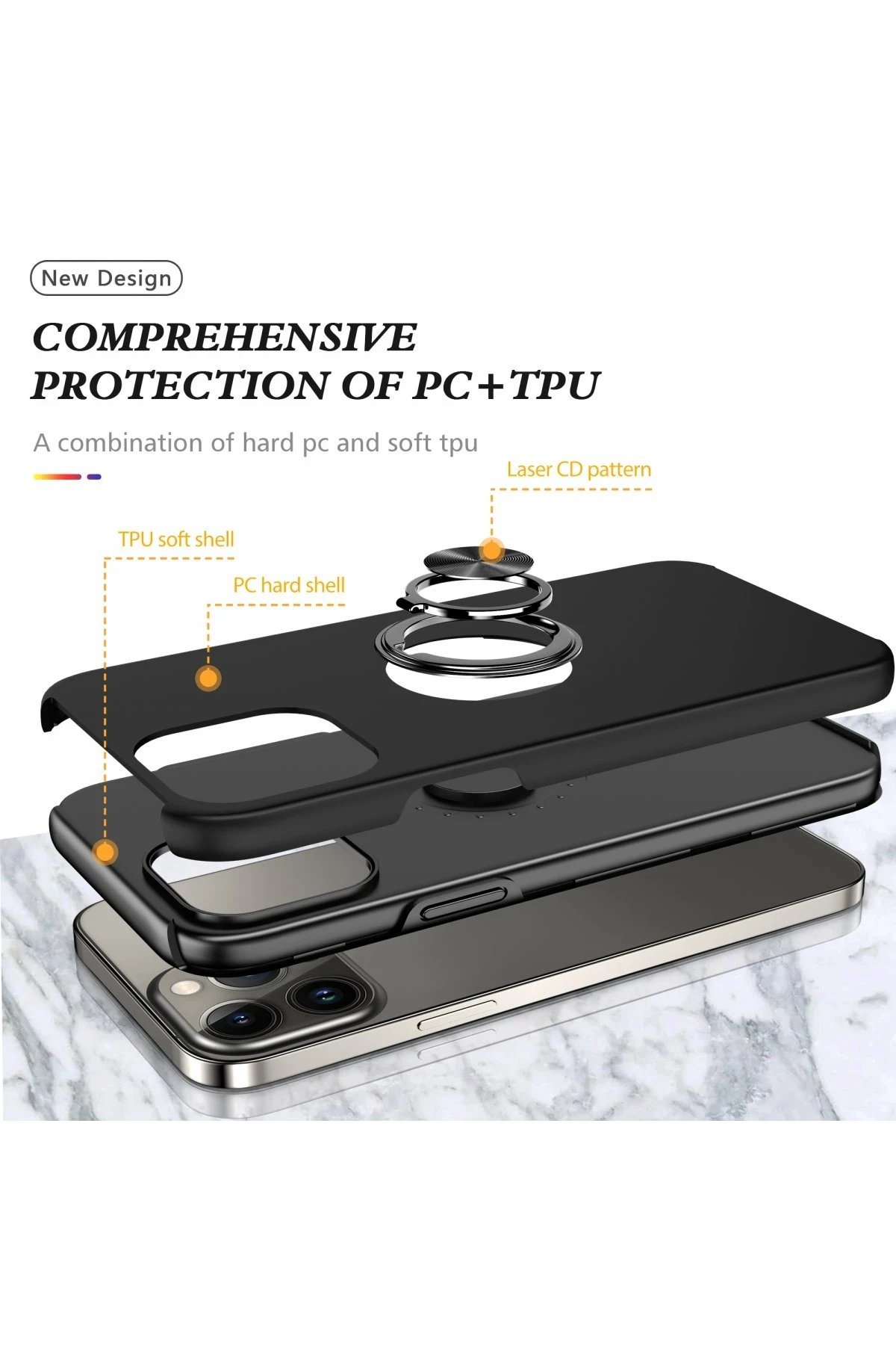 iPhone 13 Pro Kılıf Elit Yüzüklü Kapak - Siyah-(5796)
