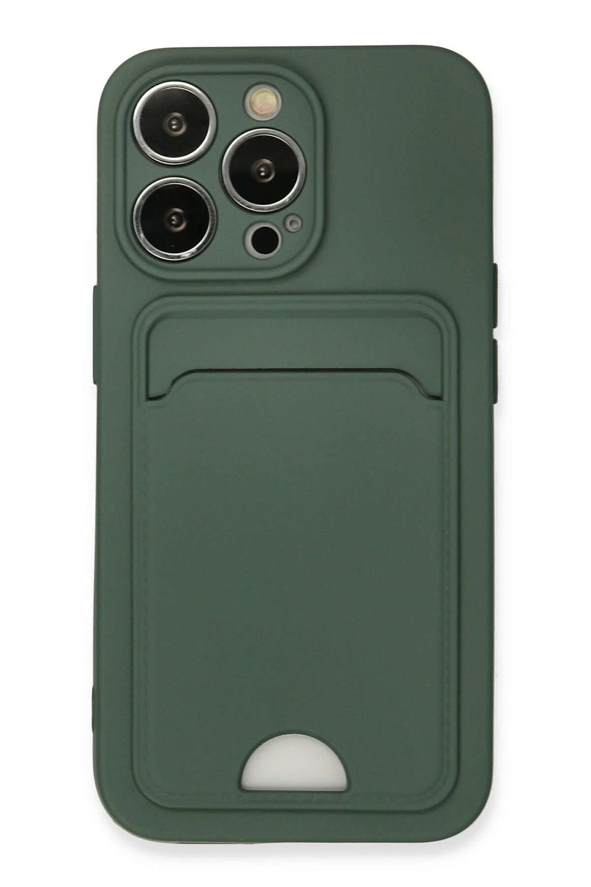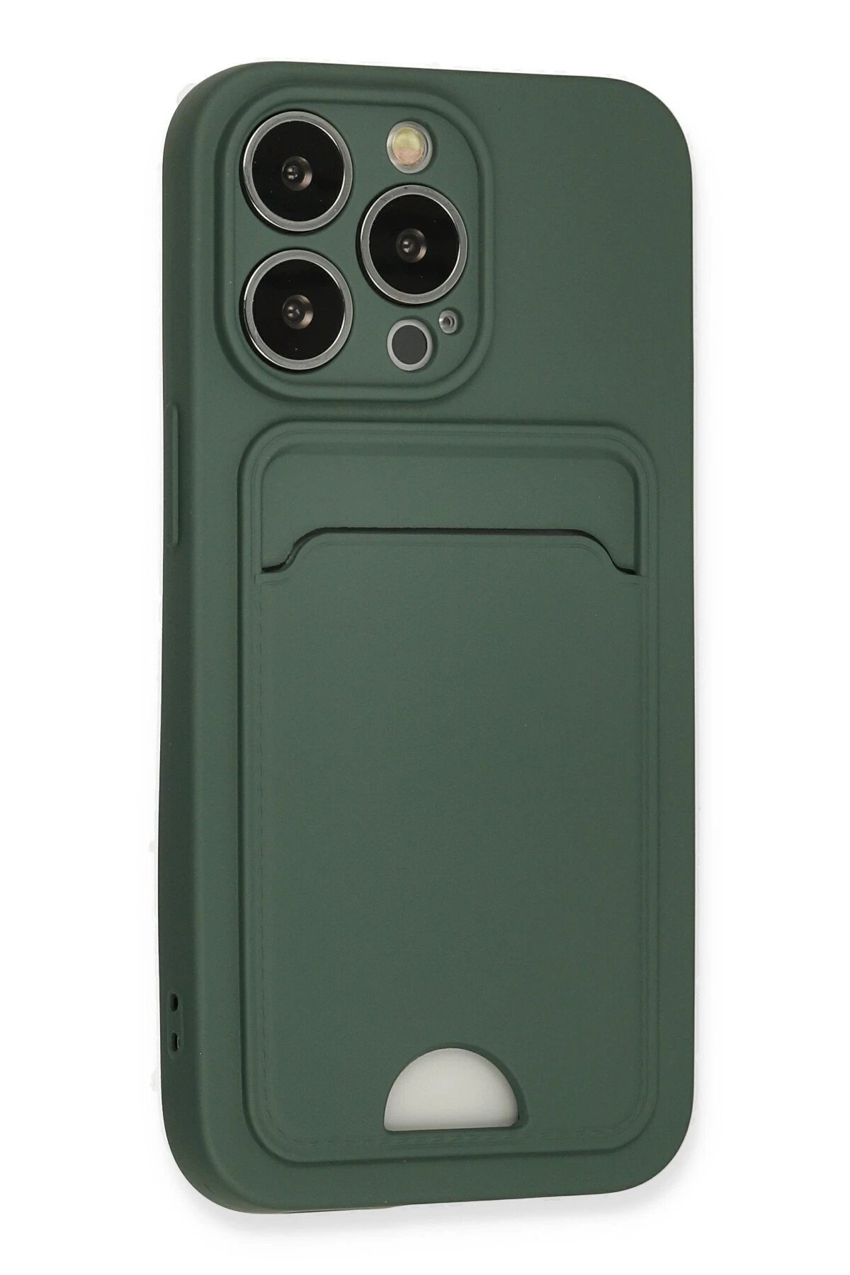 iPhone 13 Pro Kılıf Kelvin Kartvizitli Silikon - Koyu Yeşil-(5796)