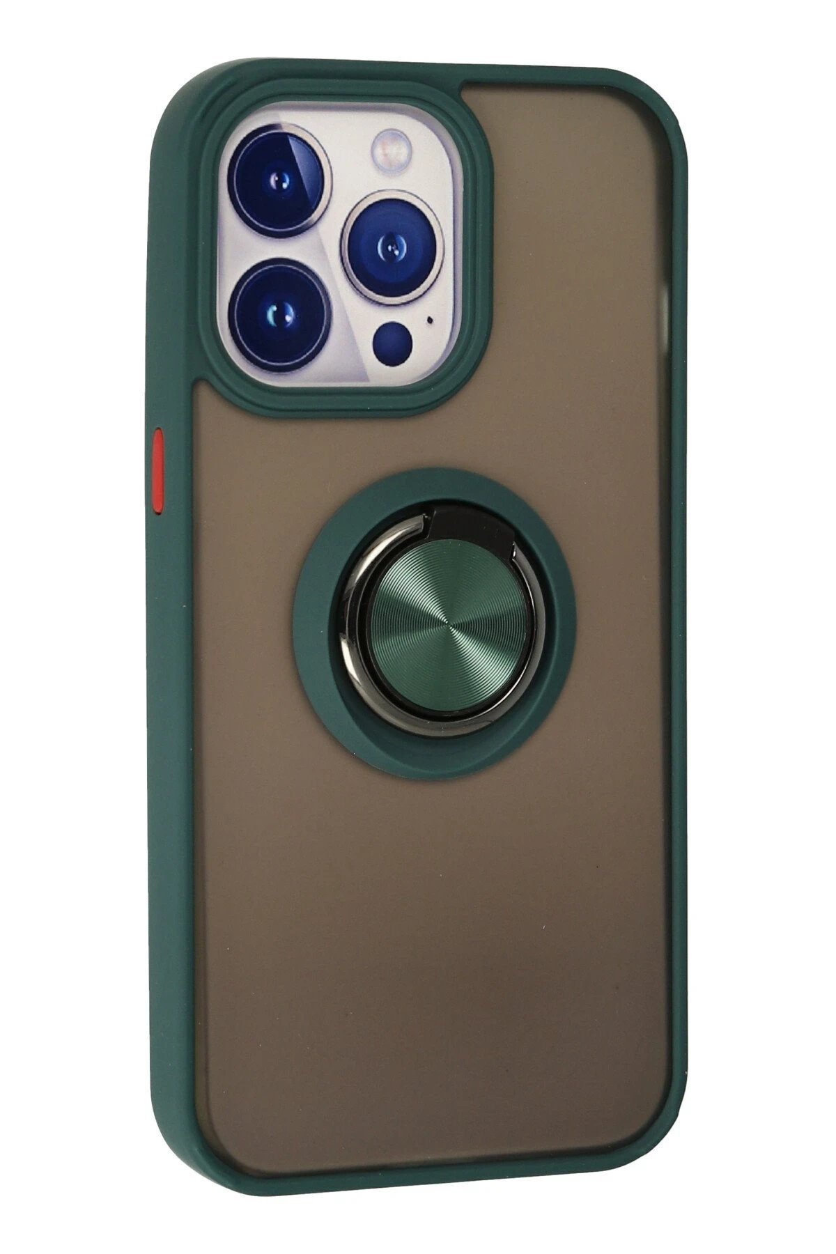 iPhone 13 Pro Kılıf Montreal Yüzüklü Silikon Kapak – Yeşil-(5796)